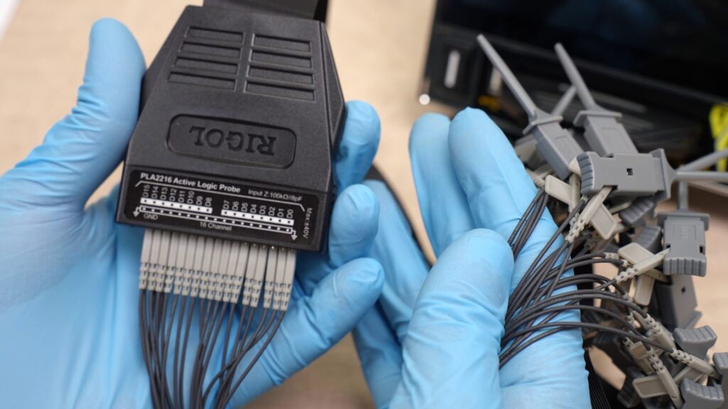 さらに、ロジック解析に使用するデジタルプローブも標準で付属します。こちらも単体では税抜き5.8万円するもので、デジタルの16チャンネルに対応したものです。MHO98では最初から全てのロジック解析オプションが有効になっているため、すぐに高度な測定が可能です。