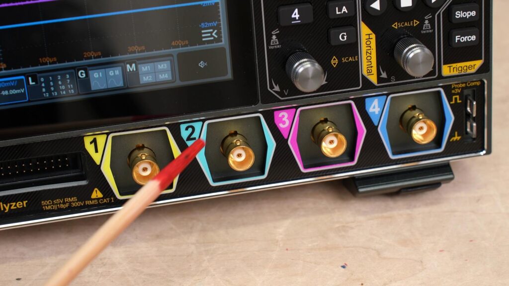 この500MHzという帯域について、一般的な利用では十分すぎる性能ではあるものの1GHzの性能をフルに引き出すにはややスペック不足感はあります。より正確な波形を取得したい場合にはGNDプローブではなくスプリンググランドを使うなど、測定方法に工夫が必要です。
