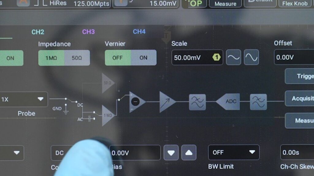 これまで入力インピーダンスの切り替えは一部の上位モデルにしか搭載されていなかったため、主に高周波回路の測定を行うユーザーにとってはこの価格帯で50Ω入力が可能になったことは非常に嬉しいポイントではないかと思います。