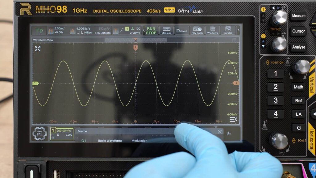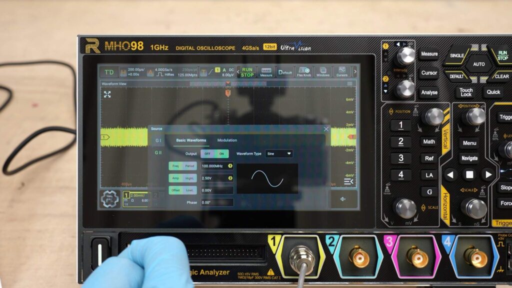実際に1GHzの信号が入力されている状態で問題なく波形が表示できています。この公称スペック通りの性能を持っていることが確認できます。