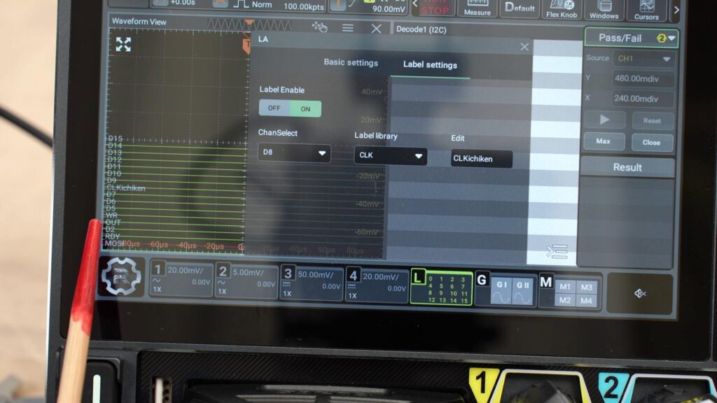 またサンプリングレートはあくまでアナログチャンネルの動作に連動して最大値が変わる仕様のようで、ロジックアナライザ機能やMath機能なんかを使用した状態であっても変化することはありませんでした。