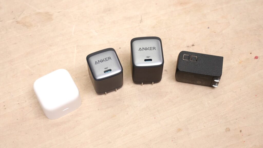 まず連続定格である40Wに近い、45Wクラスの充電器と比較します。今回はイチケンの手元に現物のあったAnker Nano II 45Wと比較します。