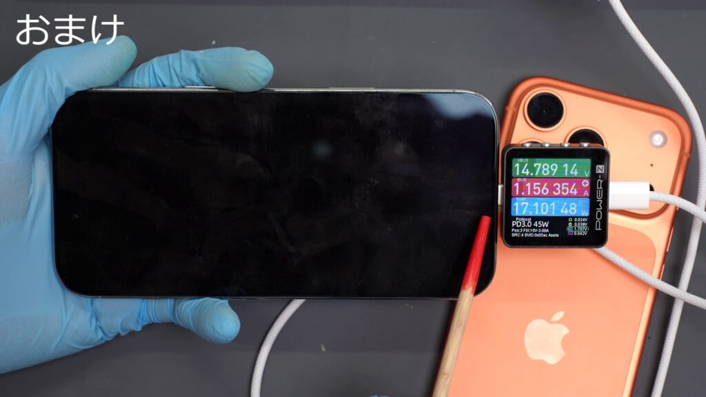 • iPhone 17 Pro : 充電器とは45Wで通信、充電電力は30W程度で安定