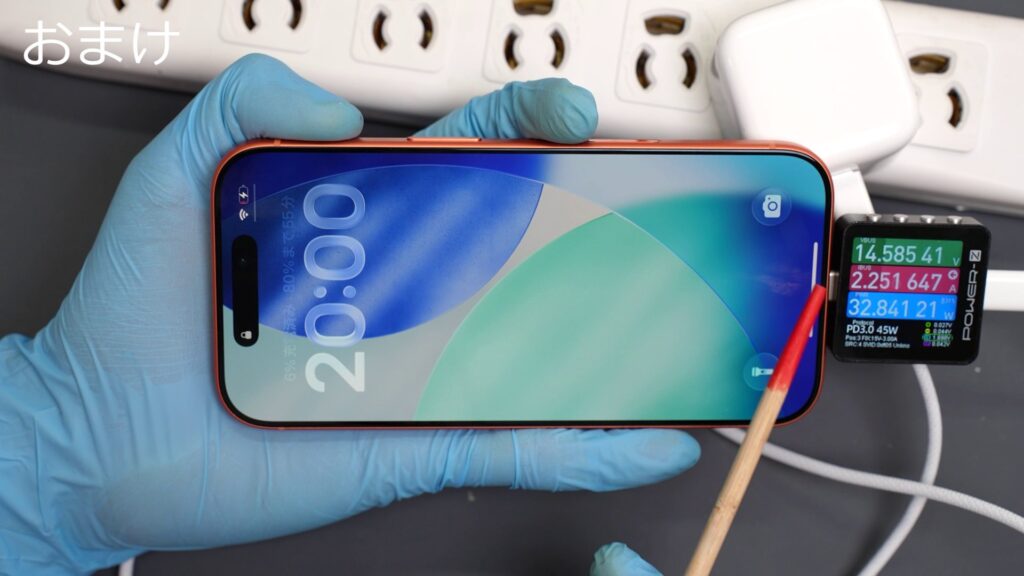 • iPhone 17 Air : 充電器とは45Wで通信、充電電力は20W程度で安定
